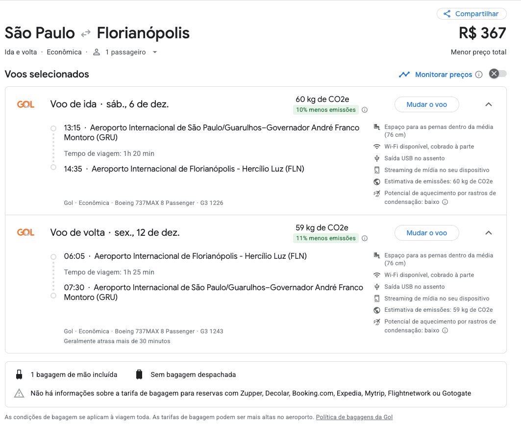 🕕 Saída: 06h05 – Aeroporto de Florianópolis (FLN)